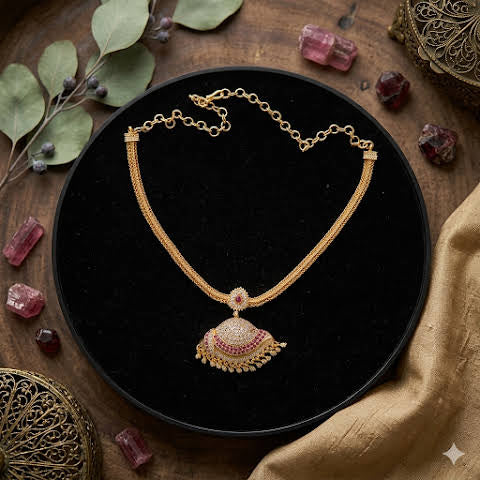 Upgrade your jewellery collection with this elegant premium impon CZ ruby and white stone attigai, designed to add a rich traditional touch to your special occasions. Featuring sparkling cubic zirconia (CZ) white stones paired with vibrant ruby accents, this attigai offers a perfect blend of classic elegance and cultural charm.