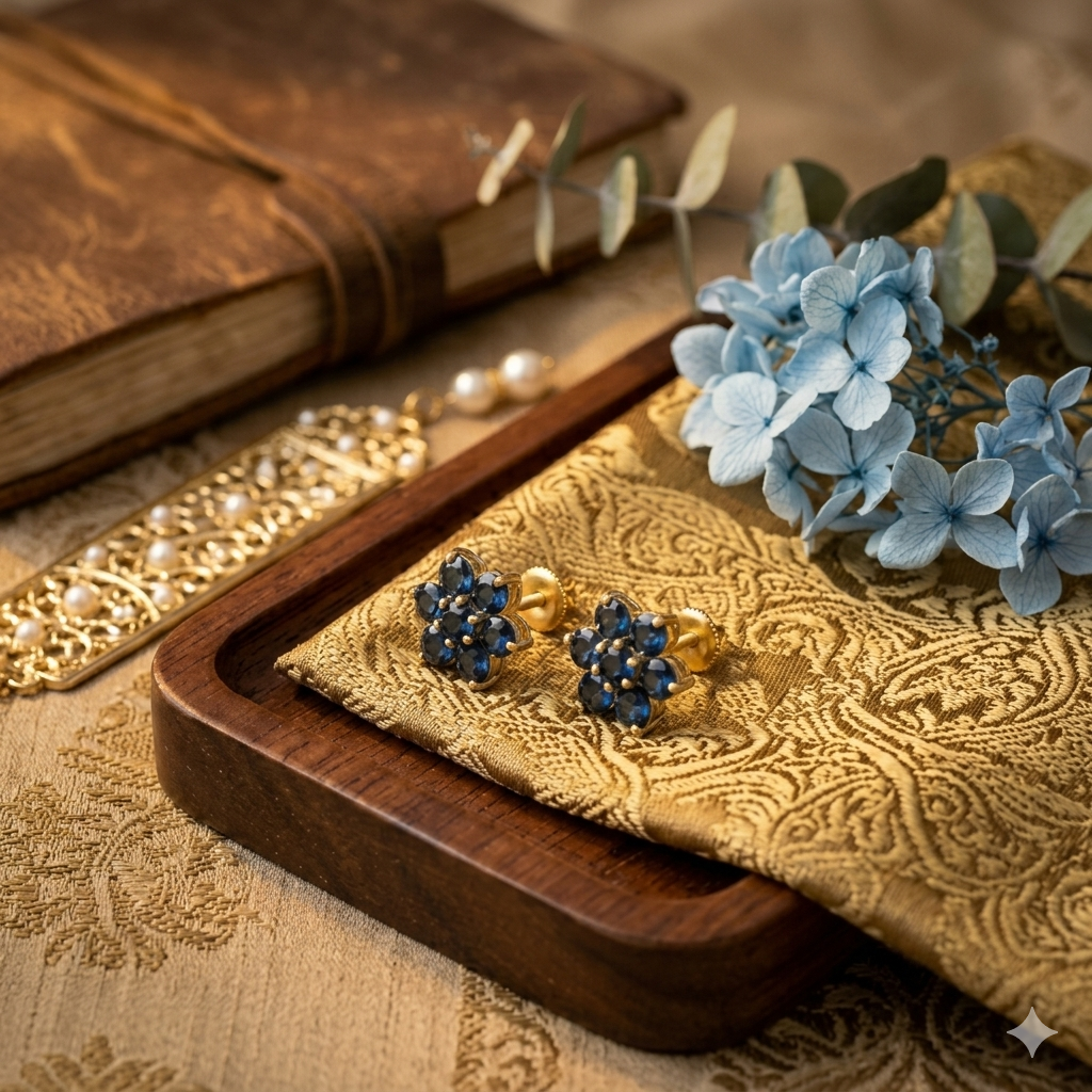 ✨ Includes cubic zirconia earrings combo with white and blue stone designs